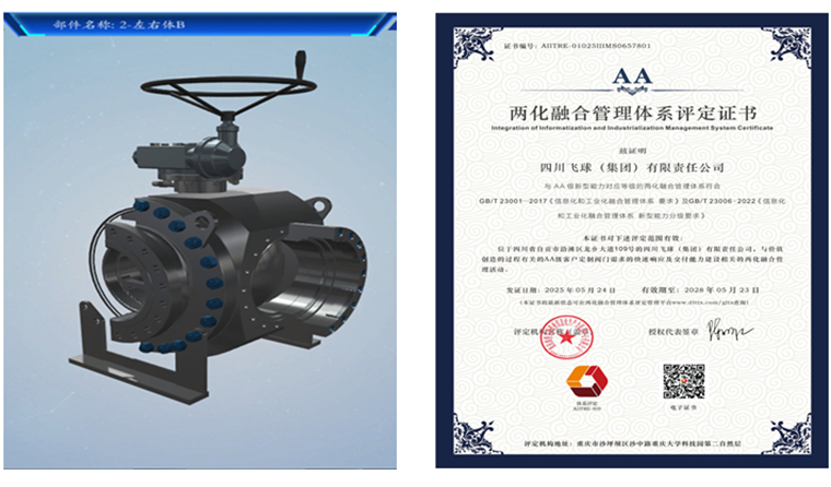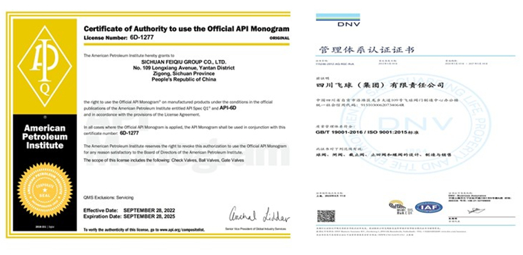 20世紀90年代初,四川飛球在行業內率先取得了美國石油學會API6D證書和挪威DNV公司IS09001證書。四川飛球生產的“飛球牌”系列閥門多次榮獲“四川省名牌產品”、“中國十大閥門品牌”,“飛球牌”商標更于2012年榮獲“中國馳名商標”稱號。四川飛球先后獲得國家級CAD應用示范企業、國家高新技術企業、國家專精特新“小巨人”企業、中國標準創新貢獻二等獎勵企業、兩化融合管理體系評定證書(AA)、能源管理體系證書、四川省企業技術中心、四川省“專精特新”企業、四川省技術創新示范企業、四川省工業質量標桿企業、四川省機械工業50強、多次獲得中石化“優秀閥門供應商”和“深度合作獎”證書、2024年“四川飛球智能低碳球閥中試平臺”獲自貢市科技局認定。“四川飛球創新團隊”入選2025年度“鹽都百千萬英才計劃”等多項榮譽及稱號。