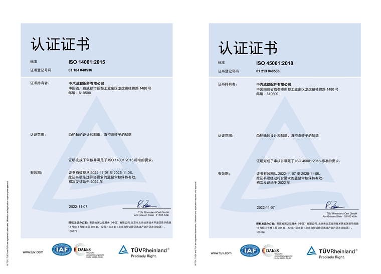 EHS體系認證是企業在環境、健康和安全管理方面的國際認可標準。審核過程包括了對車間及各職能部門的個體防護裝備、工具和設備安全、人機工程、作業環境、人員管理、制度與程序等方面的嚴格審核。中汽成配在完成不符合項跟蹤及驗證后,收到了萊茵公司頒布的ISO14001、ISO45001認證證書。通過這一認證意味著中汽成配在這些領域達到了國際先進水平。