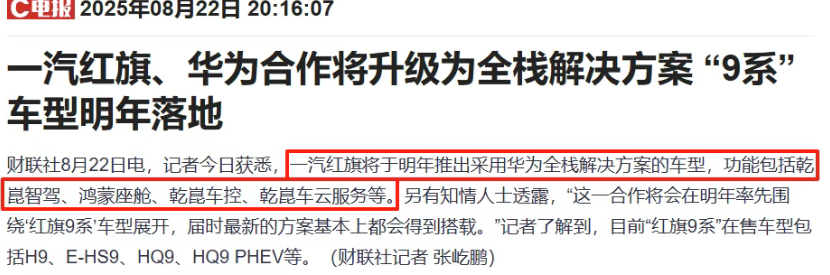 按紅旗的說法是,搭載華為全棧自研解決方案。也就是說,華為的激光雷達(dá)、鴻蒙座艙、乾坤智駕、途靈底盤以及麒麟芯片等,全部上車。按合作深度來講,這基本就是第六個界了。但是呢,紅旗很特殊,它是“國字號”的第一豪華品牌,也是中國汽車工業(yè)的最高象征。如果紅旗加入“鴻蒙智行”,反而顯得格調(diào)有些低了。
