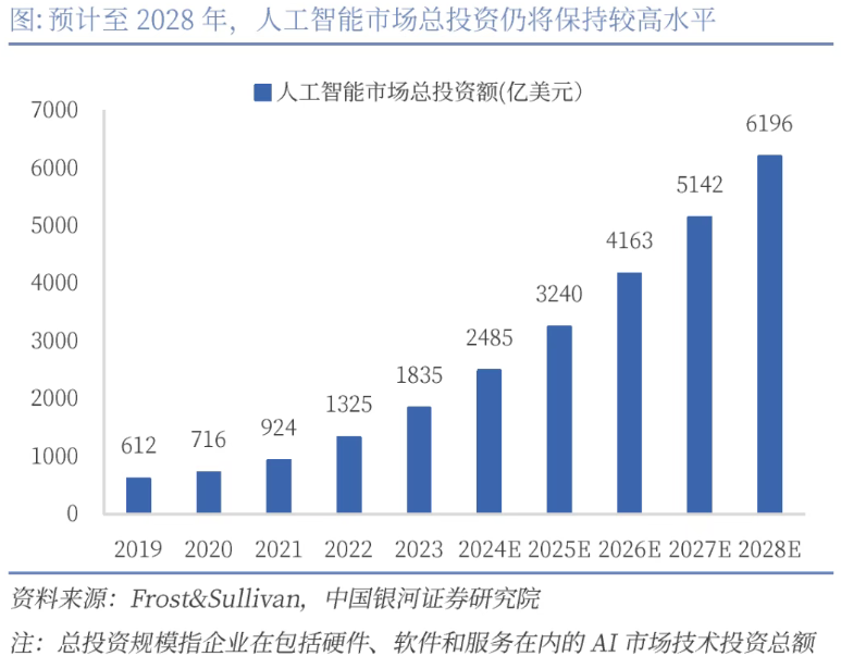購機機構預測,2028年,全球AI支出將從2000多億美元躍升到6000億美元以上,年復合增長率為28%。