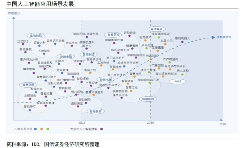 其二,率先實現從算力、算法到應用與生態完整閉環,形成“人工智能+”六大行動的集成優勢,有望先行拓展產業化的龐大版圖。